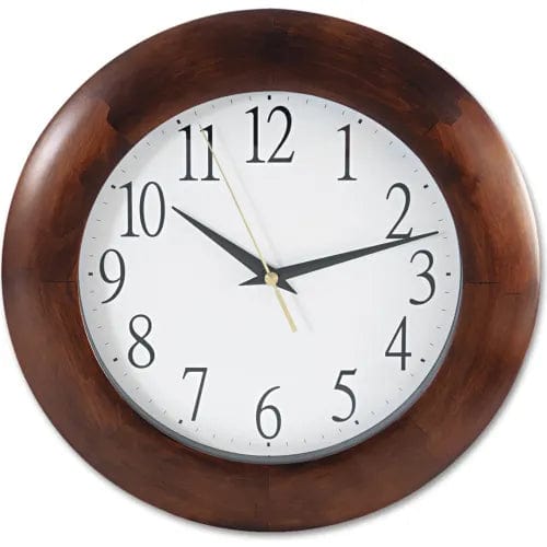 - Round Wood Wall Clock, 12.75" Overall Diameter, Cherry Case, 1 AA