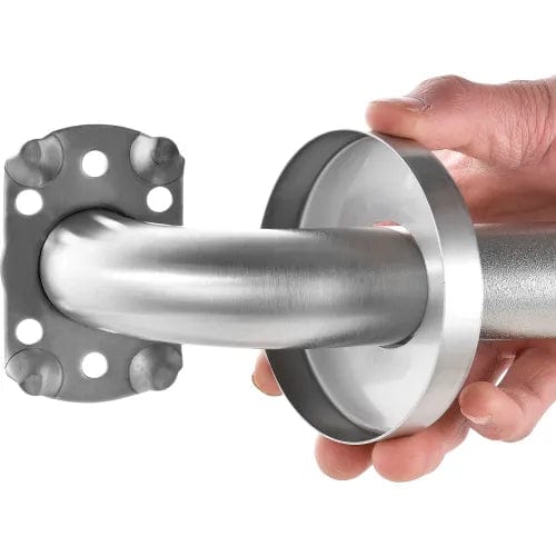 Grab Bars help add safety to restrooms and changing areas. Grab Bars feature concealed mounting flanges for enhanced appearance. Constructed of 18 gauge stainless steel tubing, with a satin finish. 16 gauge concealed mounting flange features stainless steel plate with two holes for concealed anchors. Flange cover is 3-1/4" diameter, 24 gauge stainless steel with a satin finish, and snaps over mounting flange to conceal screws. 250 lb. capacity. Includes drywall mounting screws. Dimensions: 42" Width x 1-1/2" Diameter.