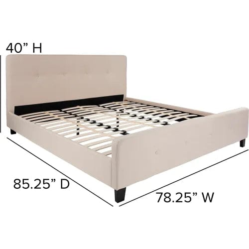- Tribeca Tufted Upholstered Platform Bed in Beige, King Size
