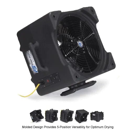 These blowers dry carpets quickly using high volume, high velocity airflow. Ideal for drying carpets, rugs, padding, baseboards, closets, ceilings, attics, paint and more Helps reduce drying time by 50% or more with Powr-Pitch°. Perfect for flood restoration jobs. These floor dryers create 3000 CFM. Allows daisy-chain connections for up to 5 dryers with built-in GCFI outlets on control panel. Use up to 6 dryers on a single 15 amp circuit. Features a two-speed 1/4HP fan motor. Polyethylene housing is molded to provide 5-position versatility for optimum drying. 20'L power cord.