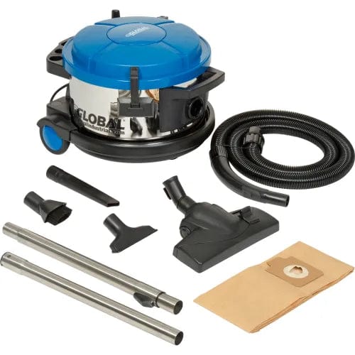 Lightweight and powerful, the Global Industrial™ HEPA Canister Vacuum is ideal for light to medium commercial clean up jobs. The HEPA filter removes 99.97% of air particles down to 0.3 microns, meeting OSHA filtration requirements. Its powerful cleaning capability with low operating noise can be used for public area cleaning such as healthcare facilities, schools, government buildings, airports, hotels, and so much more. This model includes a washable sack filter with a motor filter to keep damaging dust and particles from causing reduced operating efficiency or blockage. The ergonomic handle and protected rear wheels and swivel front wheels provide easy mobility. Non-marking protective bumper shields furniture and walls from nicks and scrapes. Tools and high-visibility orange power cord can be stored on the canister. The dust bag holds 2.1 gallons of dirt and debris to reduce bag changes. Weight is 19.9 lbs. Recovery tank capacity is 4-gallons. ETL and cETL certified. 1-Year Limited Warranty.