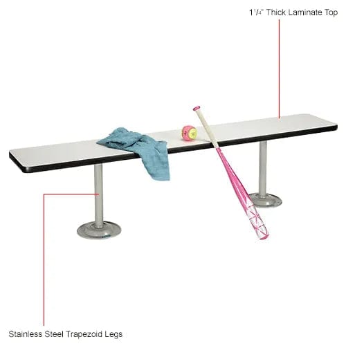 Provide seating for locker rooms, changing rooms, and similar areas with our Global Industrial™ 72"W Locker Room Bench with Laminate Top. This bench features a practical low-maintenance laminate top that is supported by resilient, stainless steel trapezoid pedestals. It is simple in both design and setup, making it idea for a wide variety of facilities from gyms to spas. Unit must be anchored to floor for maximum stability. 1-Year Limited Warranty.