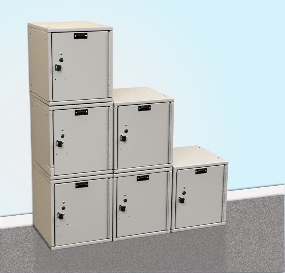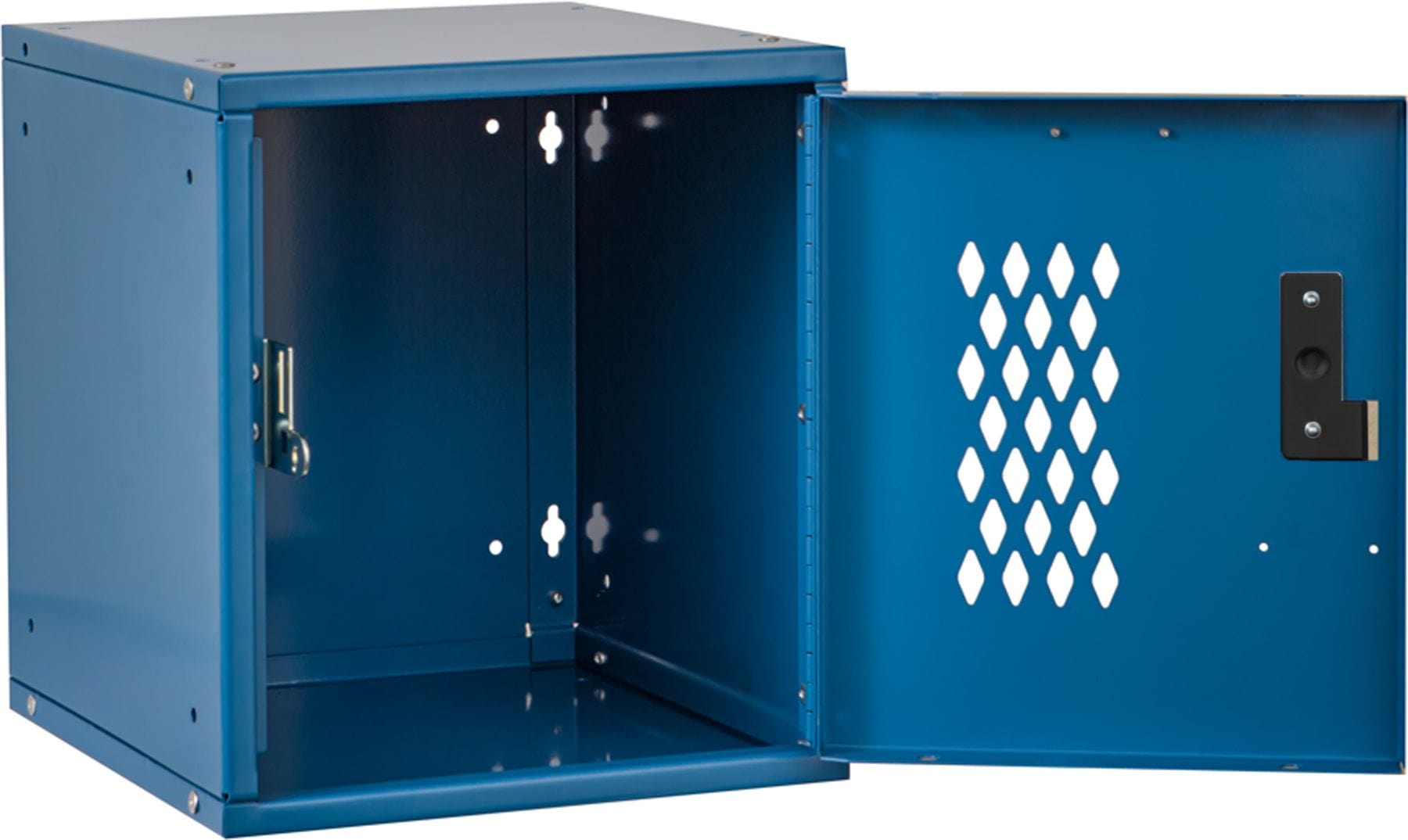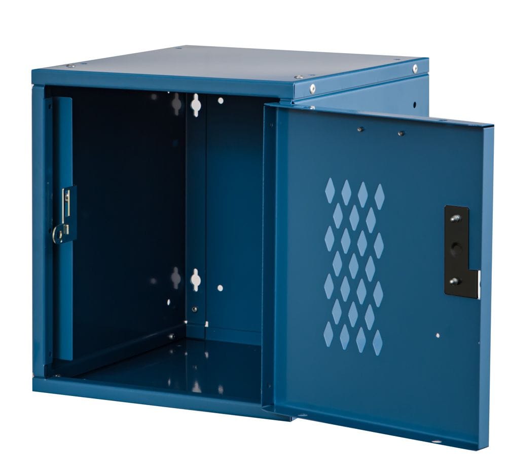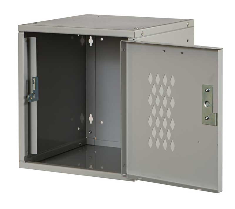 Handle: Finger pull latch prepared for padlock (sold separately), or Built-in key lock