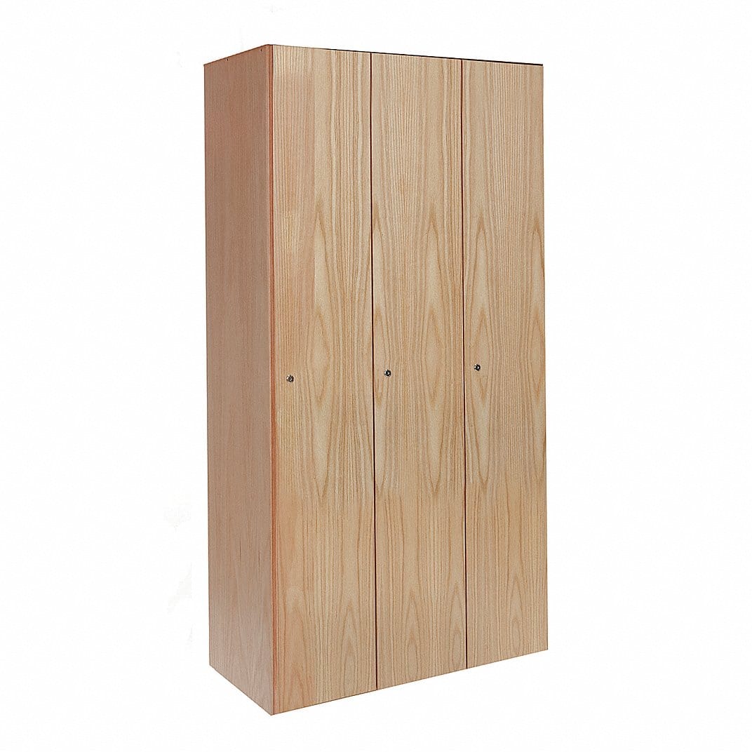 Hallowell All-Wood Club Locker, 36"W x 18"D x 72"H, Natural Red Oak with Clear Finish, Single Tier, 3-Wide