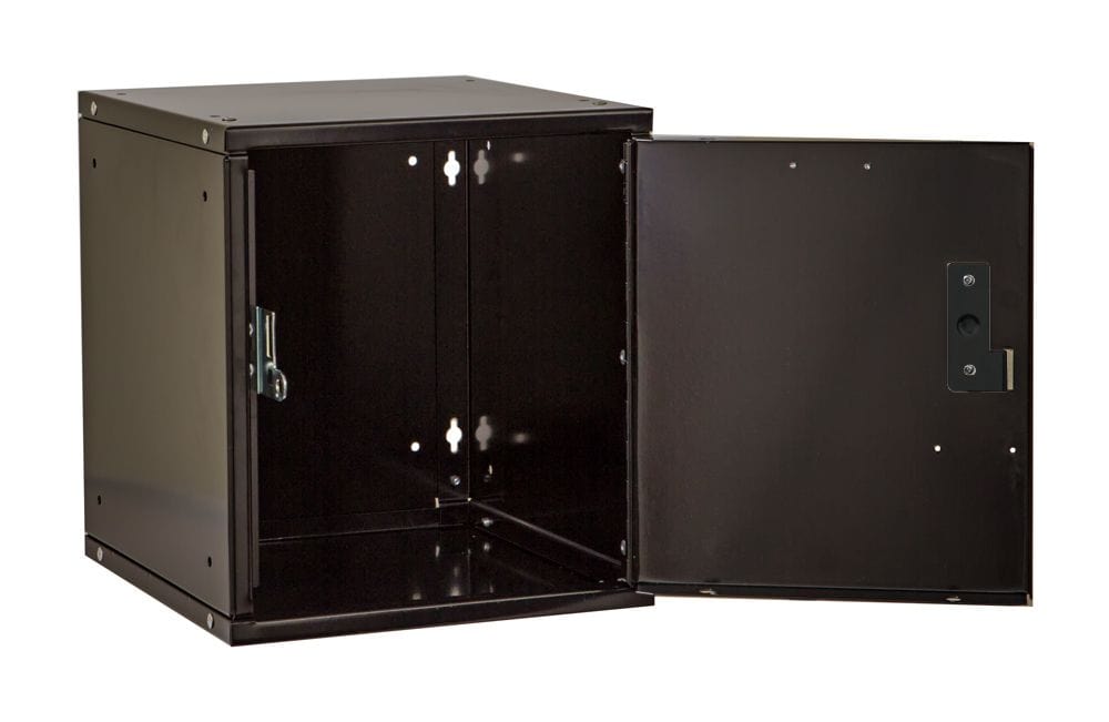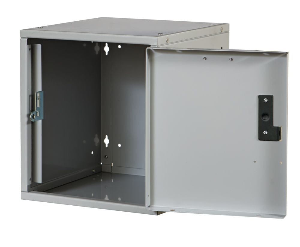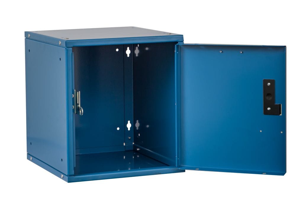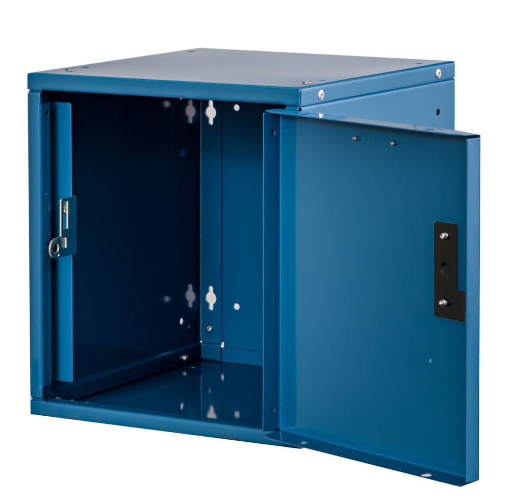 Handle: Finger pull latch prepared for padlock (sold separately), or Built-in key lock