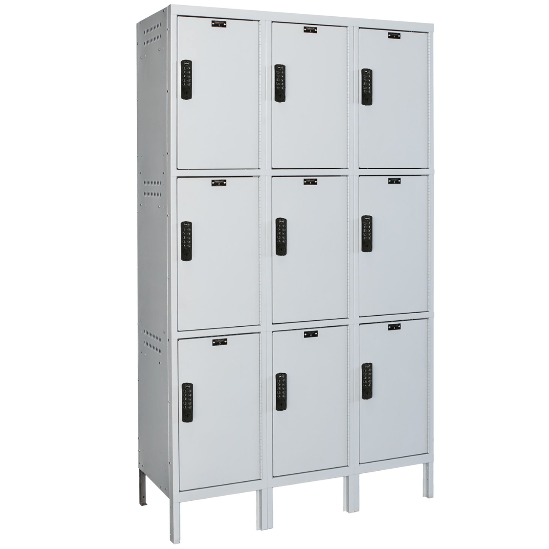 Hallowell Laptop/Backpack Locker, 45"W x 18"D x 78"H, 711 Light Gray, 3-Tier, 3-Wide