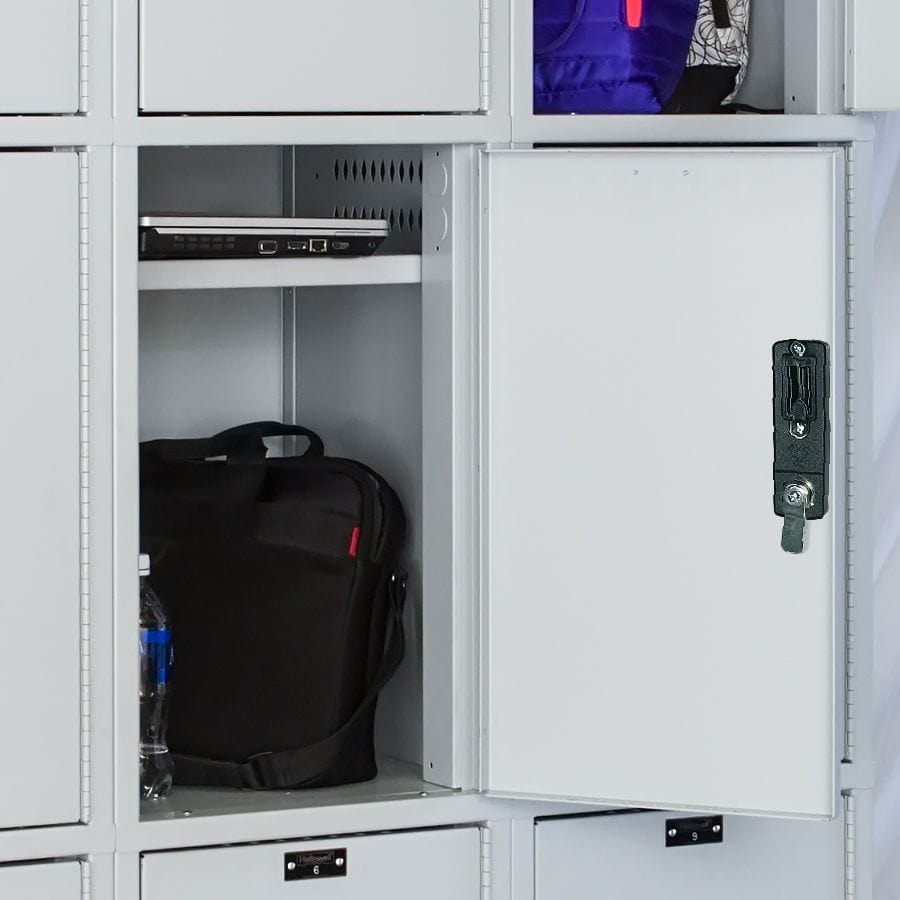 Lockers designed for laptop and backpack storage include channeling and punchouts.