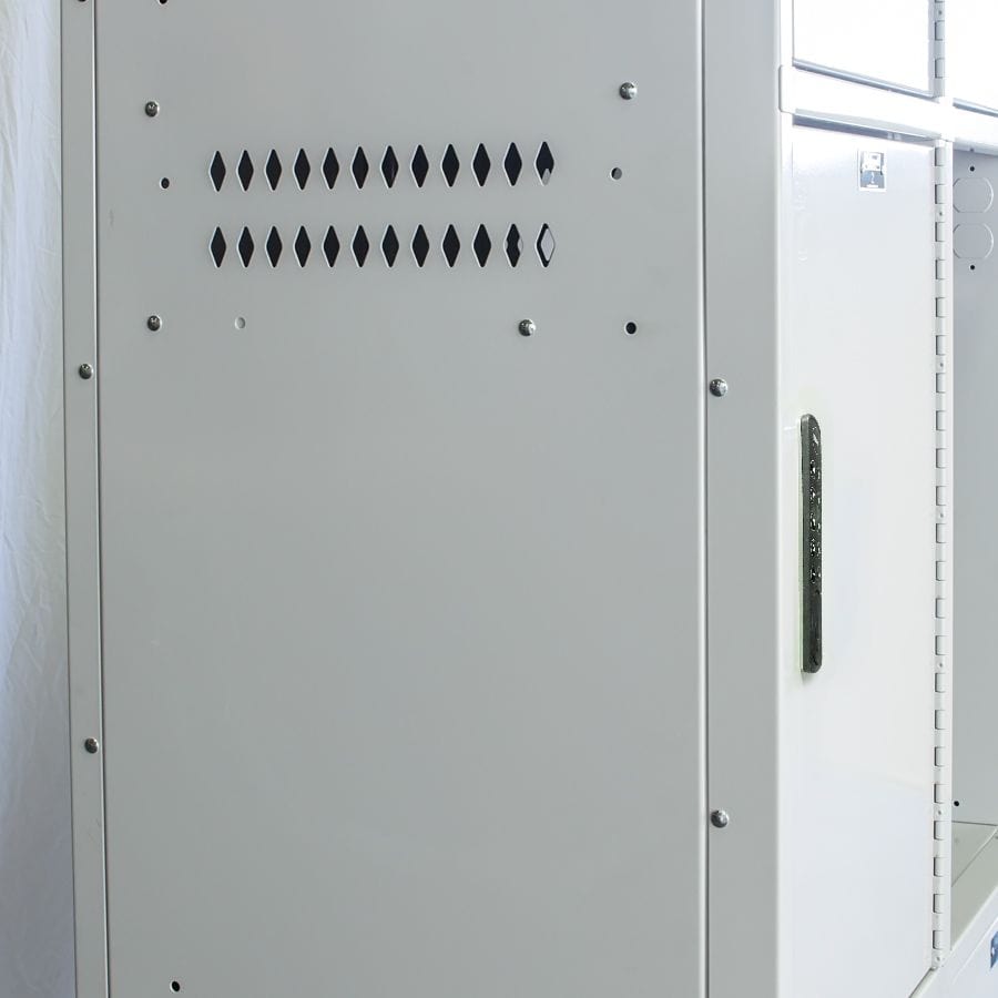 Channel shall include punch-outs for an electrical outlet in each opening. Others will supply wiring and outlets. Diamond perforated locker sides promote continuous airflow to cool chargers and components while keeping your items secure.