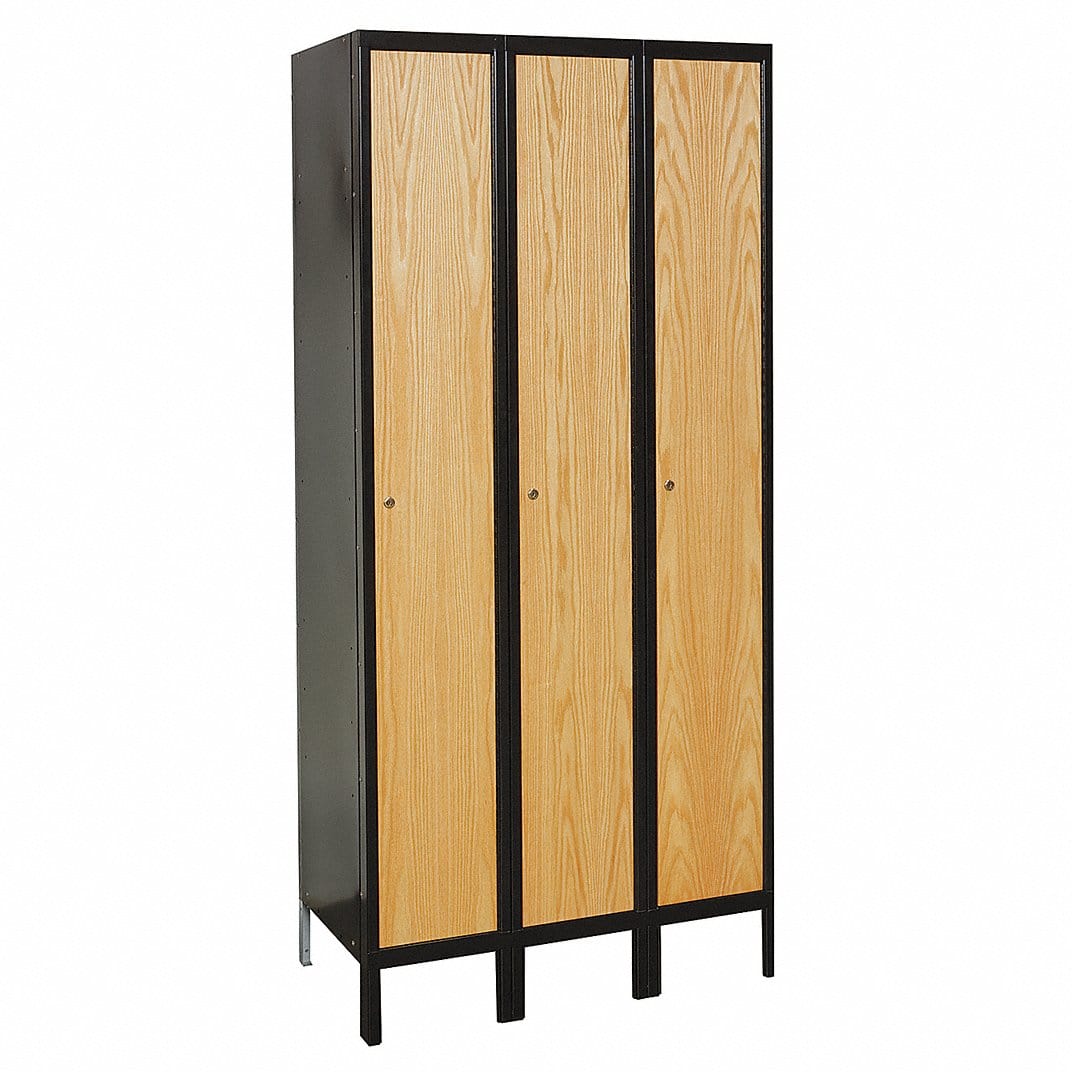 Hallowell Metal-Wood Hybrid Locker, 36"W x 18"D x 78"H, Single Tier, 3-Wide