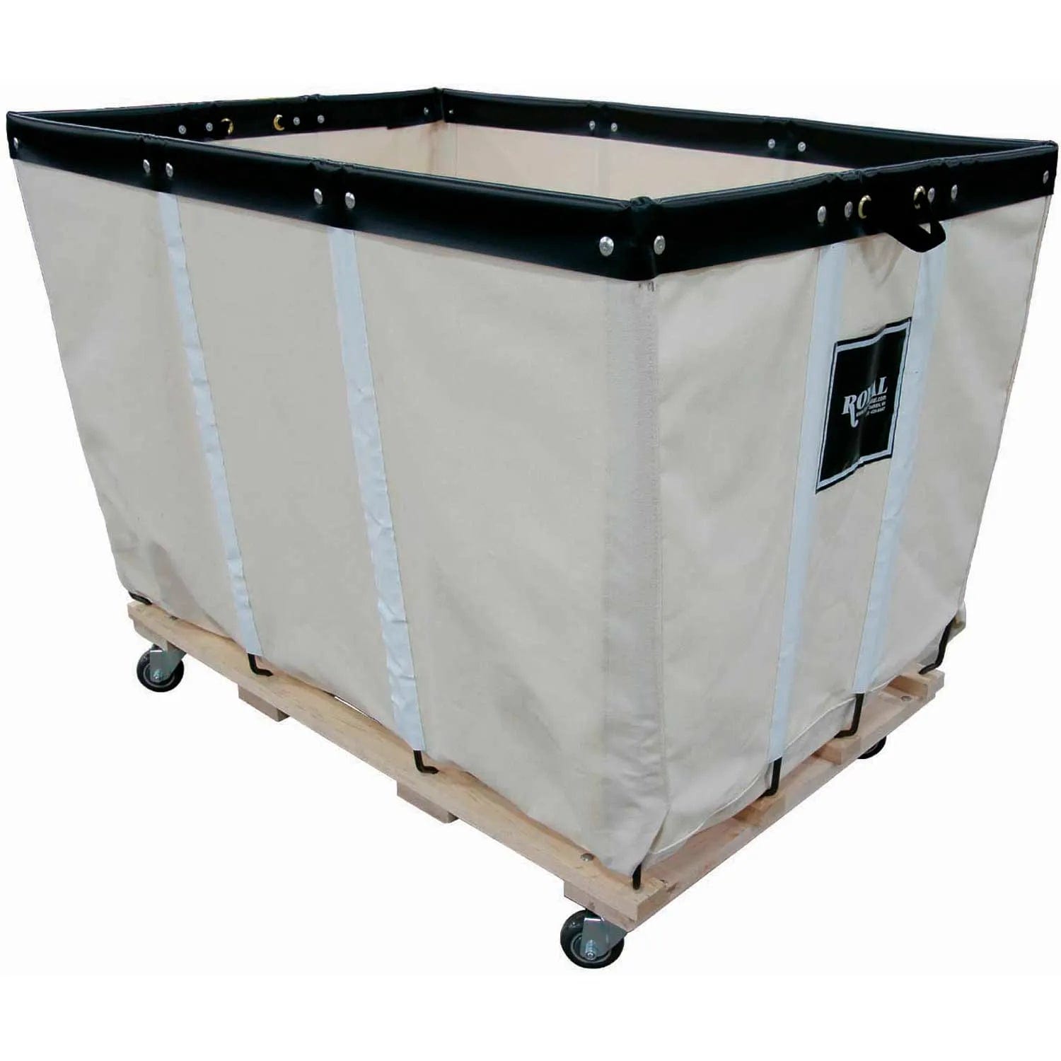 Extremely versatile heavy-duty cart for material handling, laundry, mail rooms and more. Constructed of a durable canvas liner permanently riveted to a 3/8" steel wire frame. Carts maneuver easily on polyurethane casters mounted to a kiln-dried hardwood base. Heavy duty models feature 33% more hardwood and 20% more steel over the Permanent Liner series. Ships fully assembled. Made in the USA. Standard color natural white. Additional colors, full line of accessories and custom sizes available.