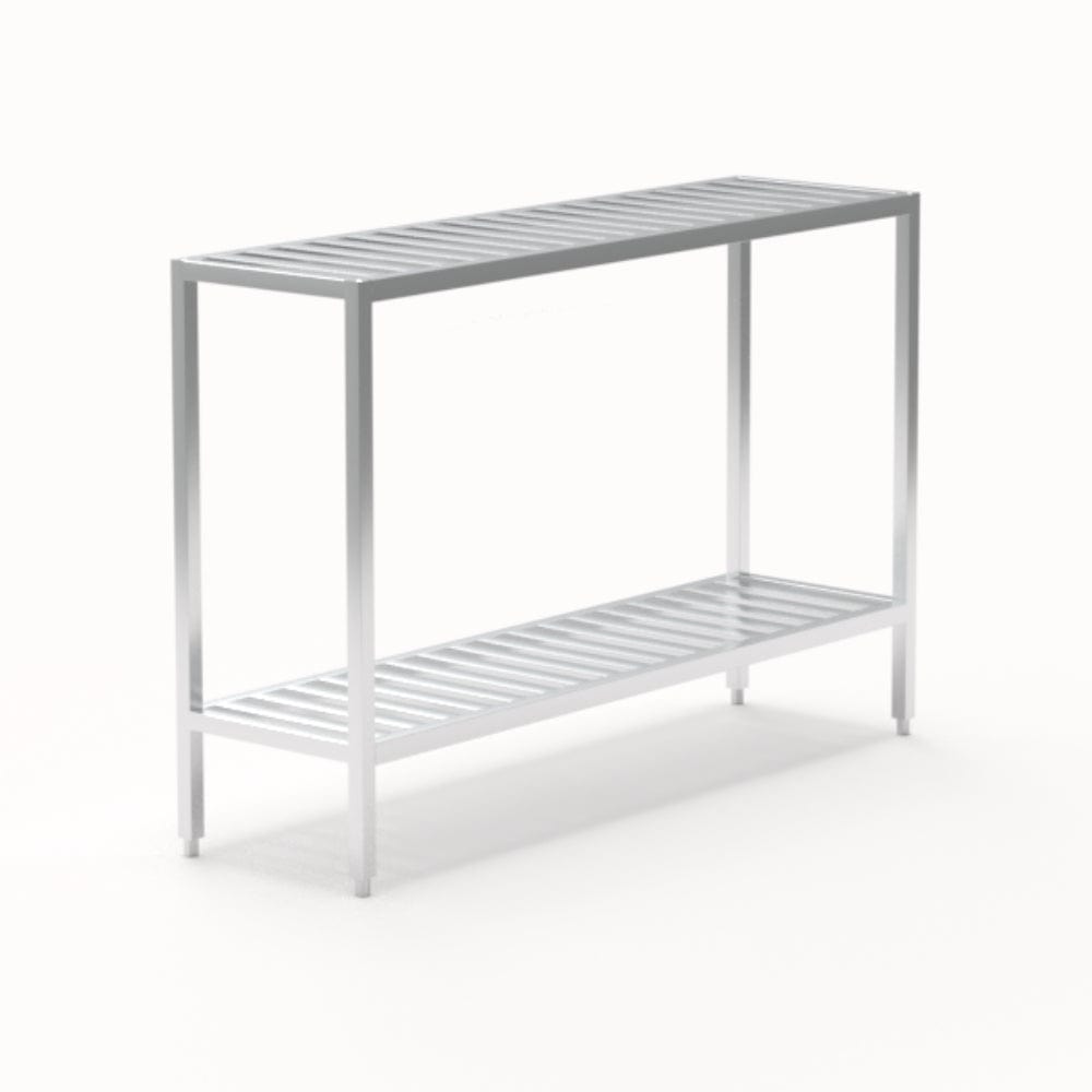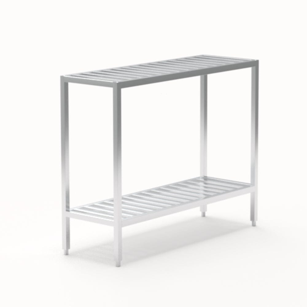 All Welded T-Bar shelving offers a smooth, flat surface that also provides adequate air flow to stored items, making it ideal for coolers, freezers, and other walk-ins. The surface is easy to clean and allows boxes to slide on and off for smaller product with the strength to hold heavy product as well. Each end of every “T” is welded at three points for maximum strength and stability! This unique, All Welded T-Bar Shelf construction allows for easy-on, easy-off of product and easy storage while providing maximum air circulation. The shelves are set and not adjustable but can be designed in nearly unlimited configurations. Keep product organized and off of the floor with these All Welded Shelving units that are often used in correctional facilities and other institutions.