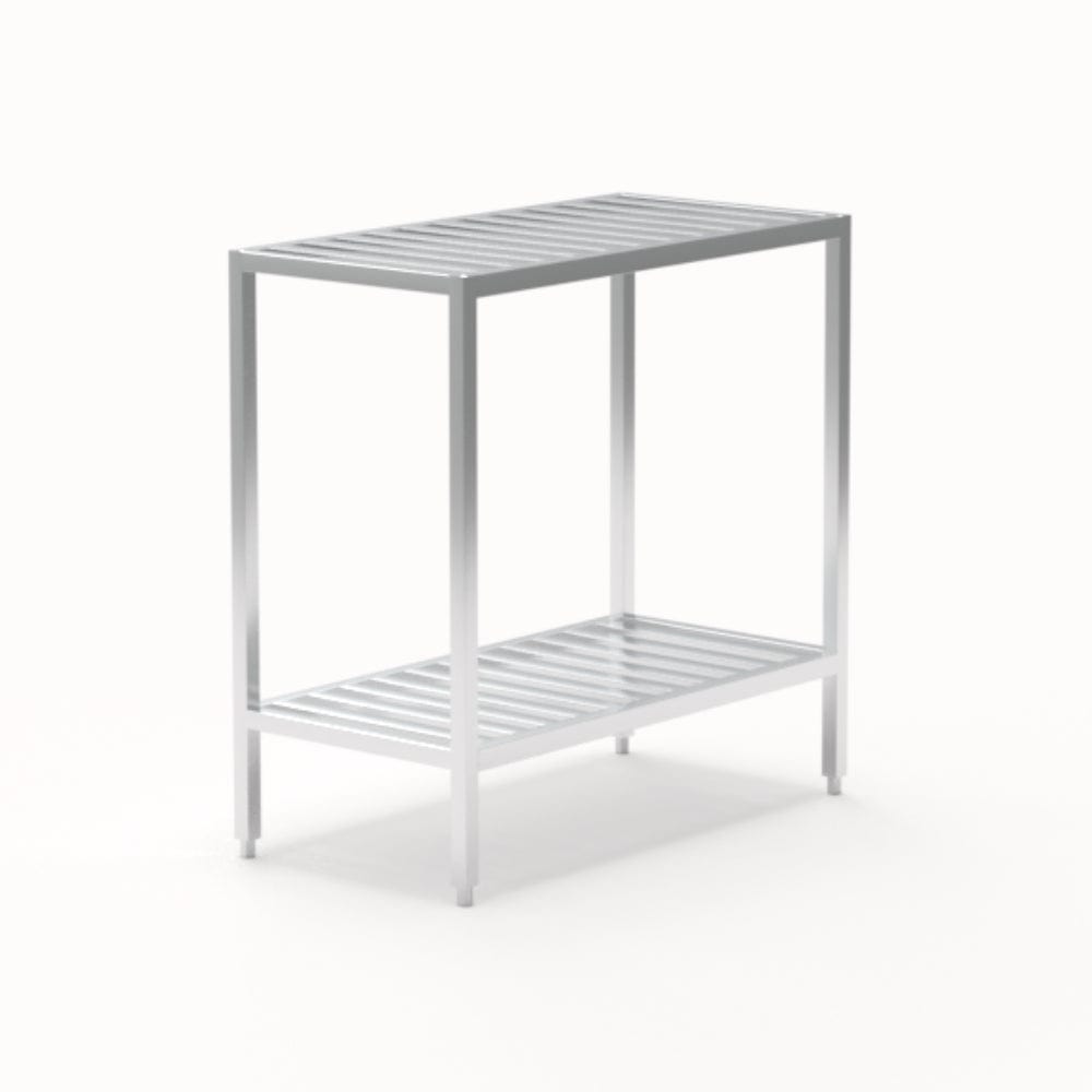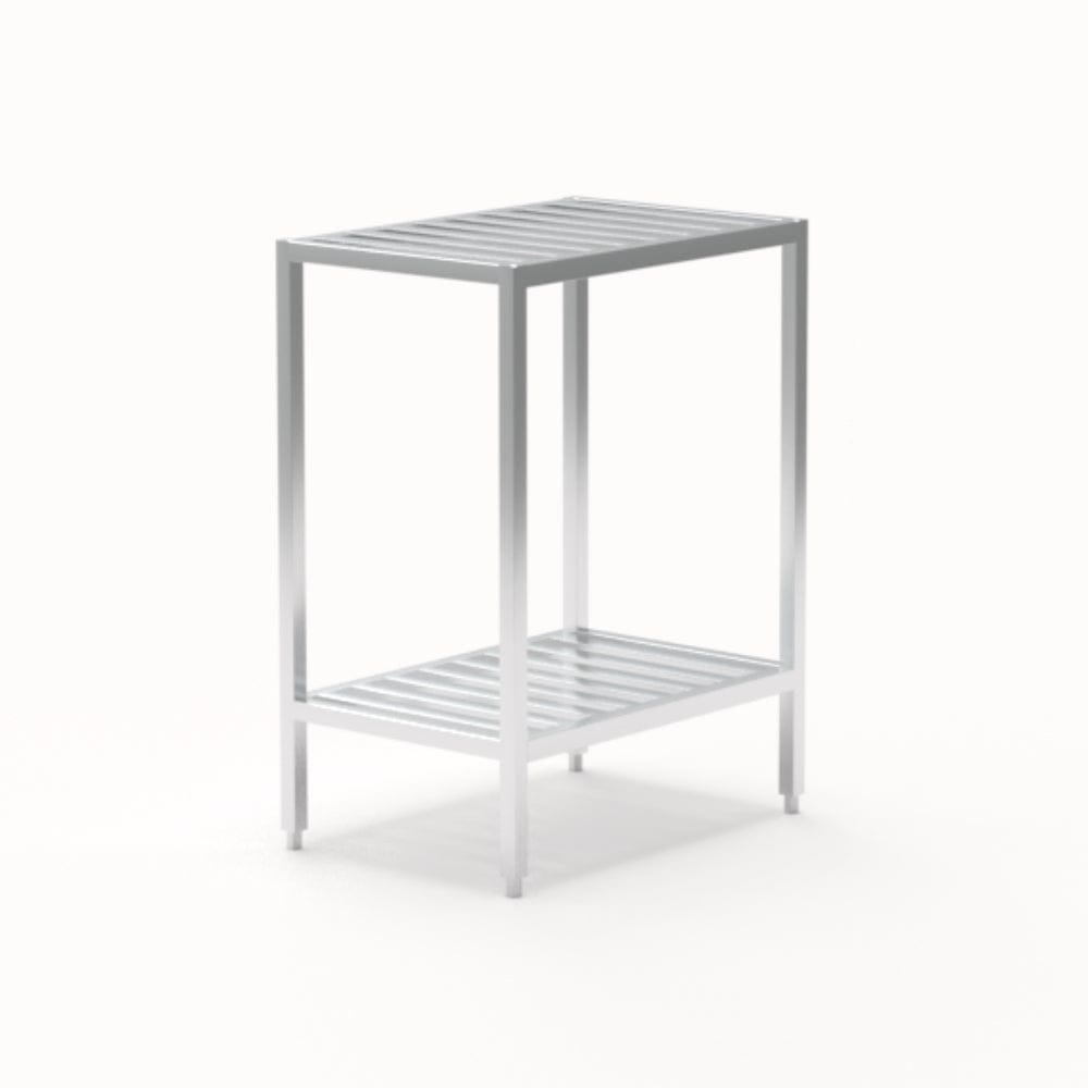 All Welded T-Bar shelving offers a smooth, flat surface that also provides adequate air flow to stored items, making it ideal for coolers, freezers, and other walk-ins. The surface is easy to clean and allows boxes to slide on and off for smaller product with the strength to hold heavy product as well. Each end of every “T” is welded at three points for maximum strength and stability! This unique, All Welded T-Bar Shelf construction allows for easy-on, easy-off of product and easy storage while providing maximum air circulation. The shelves are set and not adjustable but can be designed in nearly unlimited configurations. Keep product organized and off of the floor with these All Welded Shelving units that are often used in correctional facilities and other institutions.