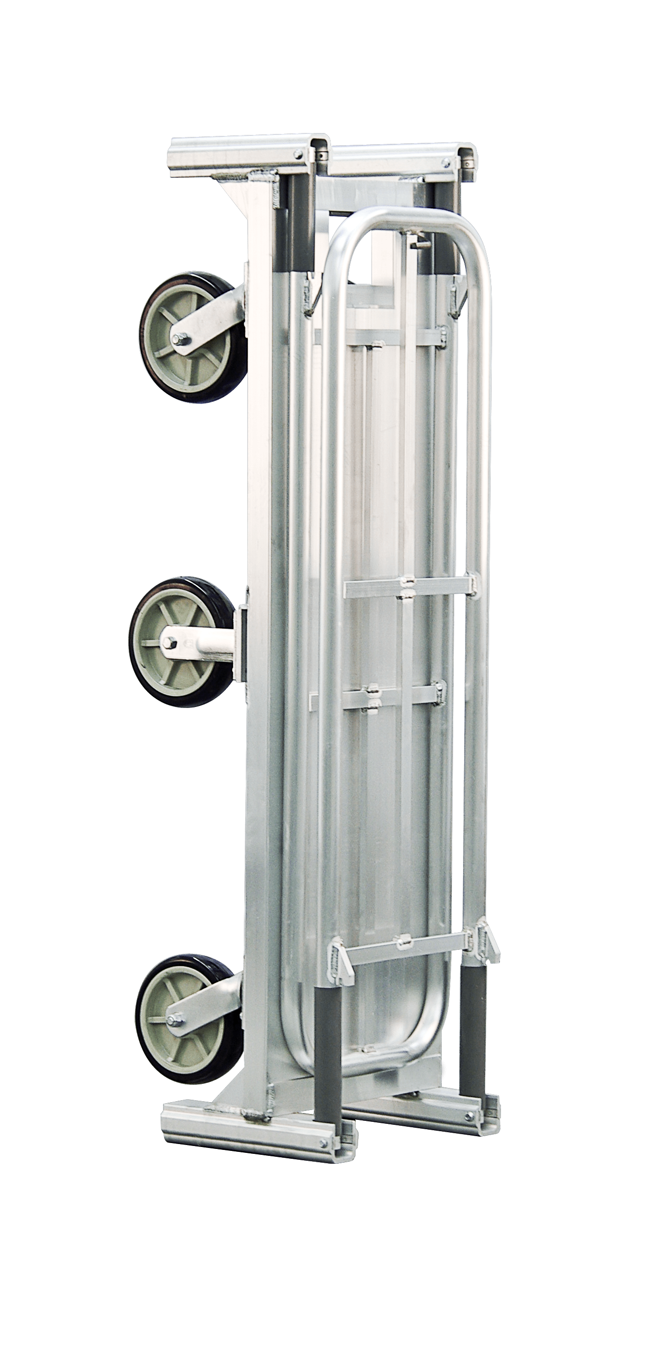 - Space-Saving Design: The unique folding handle design (with a hook to keep it latched) allows for vertical storage, fitting almost twice as many BDTs in the same space as other carts. Additionally, BDTs can be strapped upright inside delivery trucks, maximizing storage capacity.