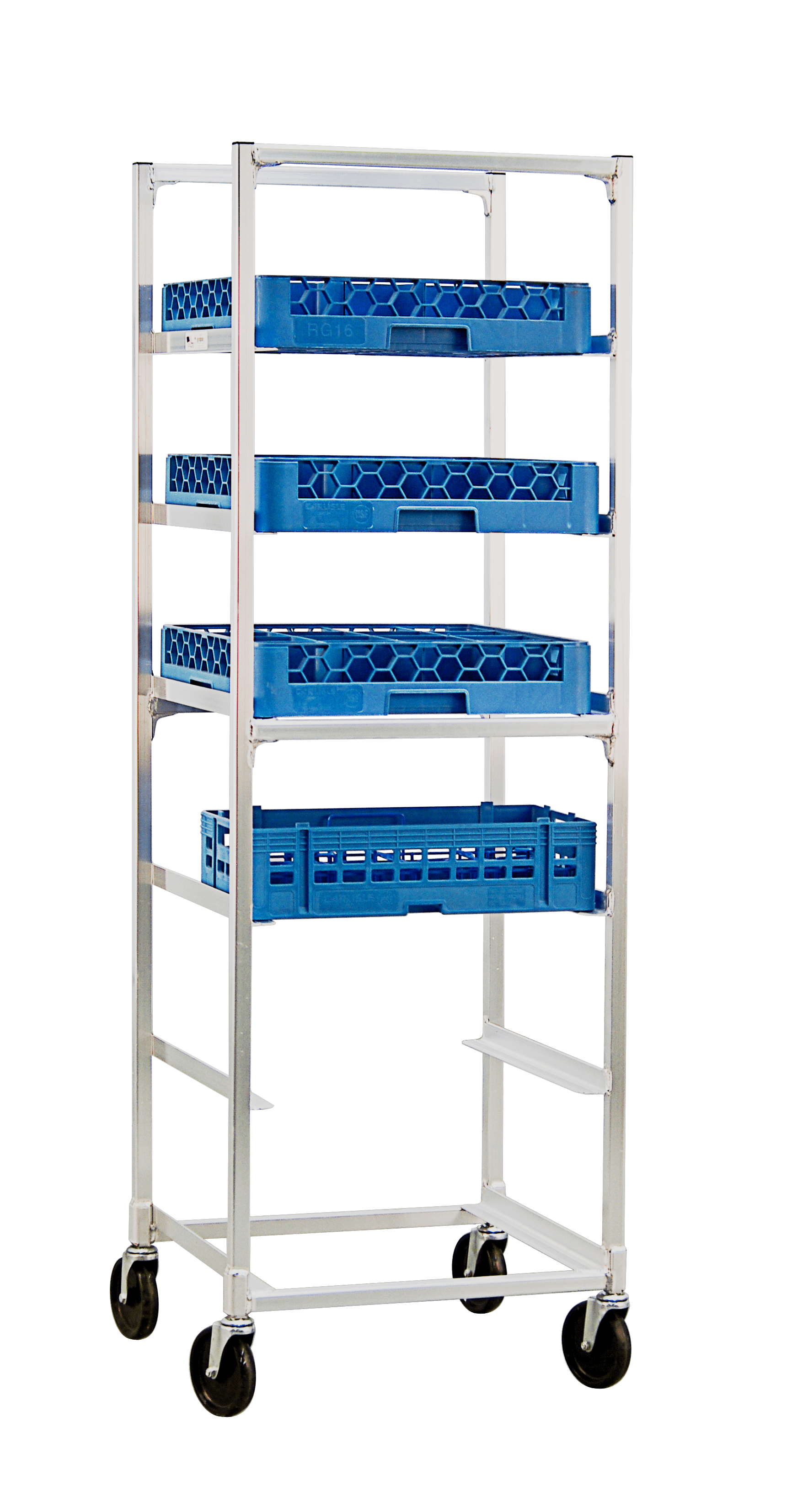 Use our Mobile Cup and Glass Racks to organize and transport dish racks containing cups and glasses from one area to another. They are great for moving racks from the dishwashing and sanitation areas back to the storage room. They are also perfect for setting tables for events, meal tray assembly lines and transporting cups and glassware from service areas to back rooms. Easily move heavy loads and eliminate wasted storage space. These carts eliminate stacking and re-stacking of baskets by allowing quick, easy access to all dish baskets simultaneously. Organize product and make more space for storage in back rooms or coolers