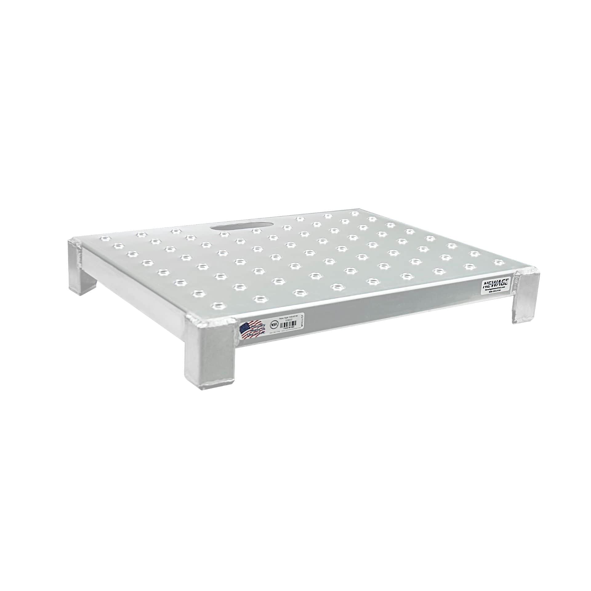 - New Age Industrial Ergo Stand, Aluminum Platform, Cutout Carrying Handle, Reinforcing Channel, Anti-Slip Deck, 4" Deck Height, 24.5" x 4" x 20.5" 53600