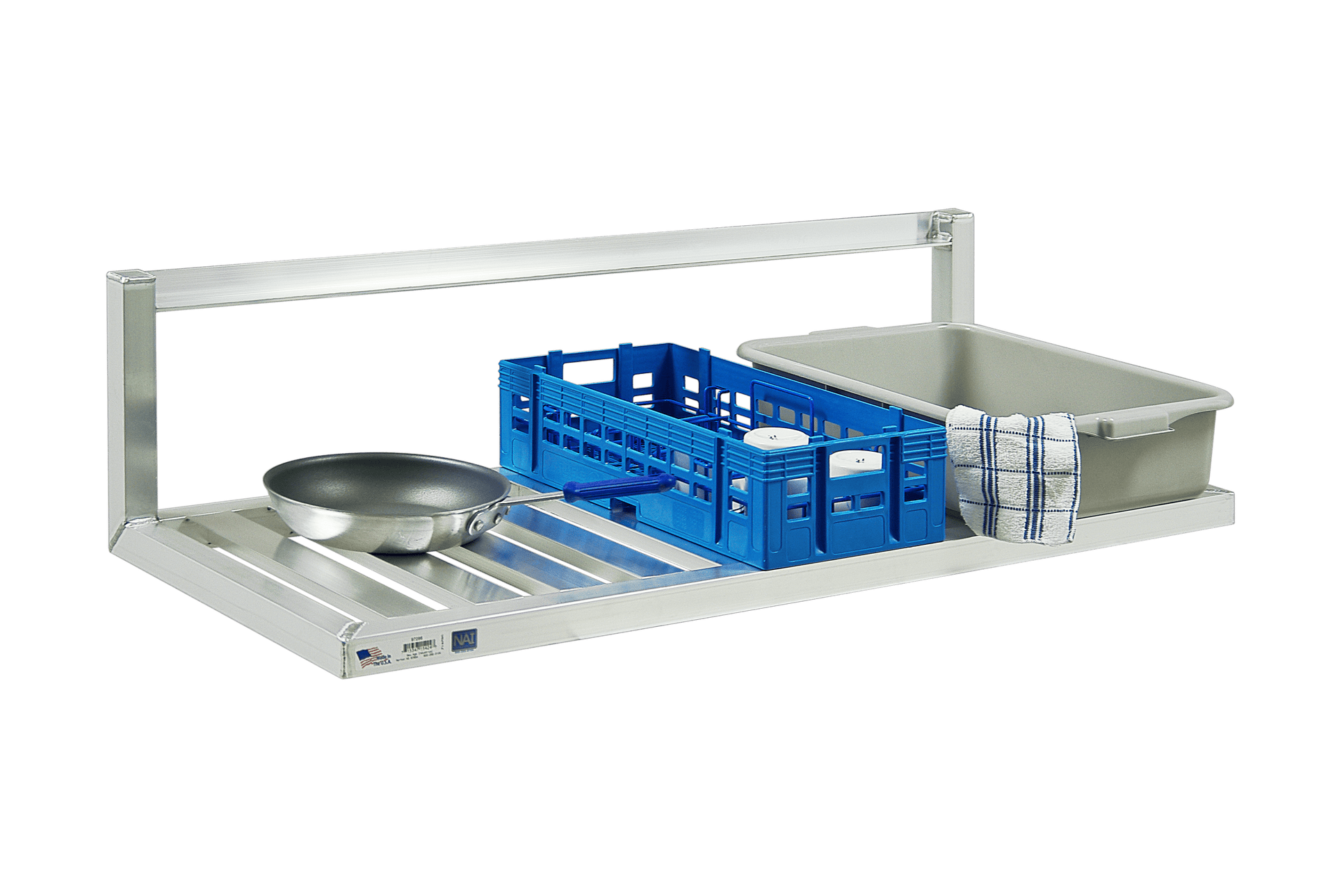 Inverted T-Bar Wall Shelves are ideal for maximizing and organizing unused, vertical storage space on walls above sinks, stoves, tables and other areas. They can also be used for overhead storage or above appliances such as upright freezers or refrigerators. Inverted wall shelves have the mounting support located above them, instead of below, allowing for flexible configuration. The T-Bar shelf construction has open slats for proper draining and airflow.