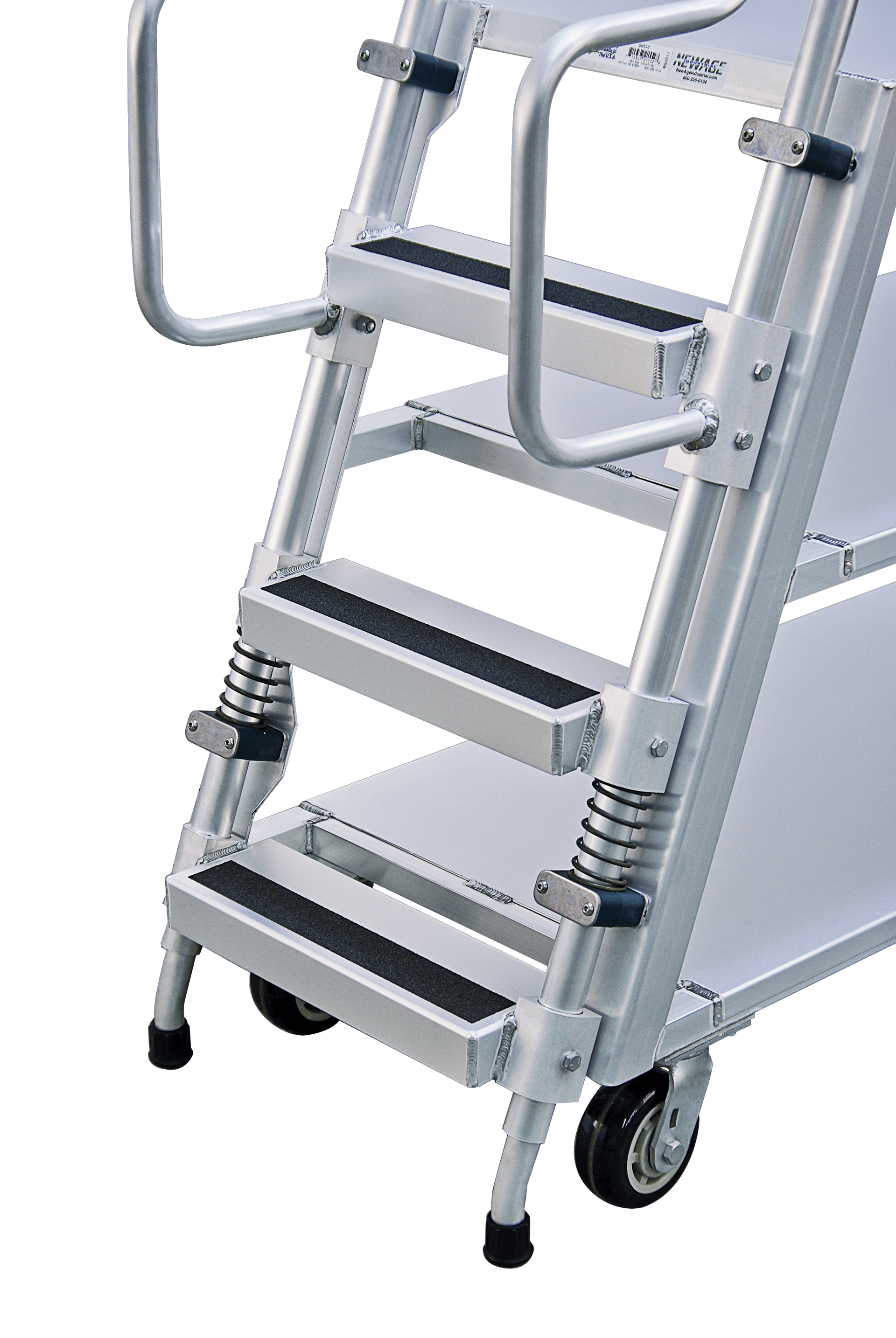 - Spring Loaded Ladder with Replaceable Rubber Stops: Creates a secure foundation, preventing cart movement while in use.