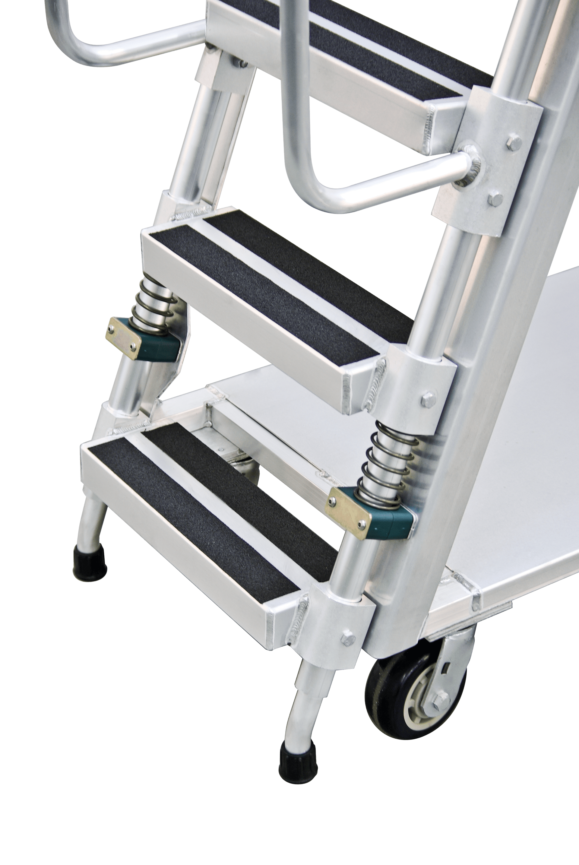 - Spring Loaded Ladder with Replaceable Rubber Stops: Creates a secure foundation, preventing cart movement while in use.