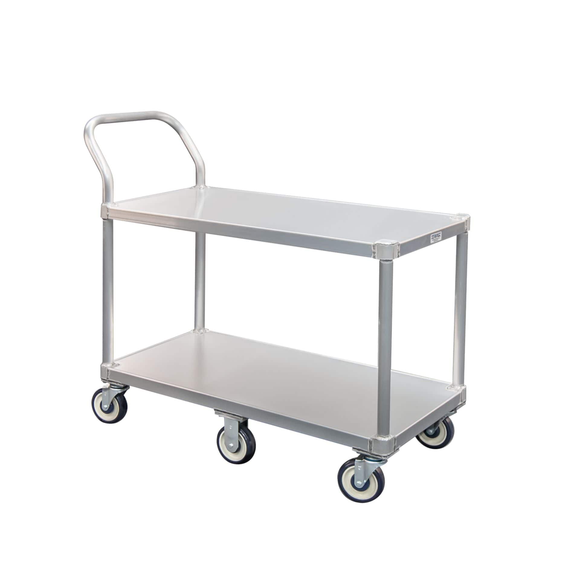 These all welded aluminum carts provide maximum strength and durability. The solid top carts have a marine edge to help contain spills. The T-Bar top carts provide air circulation.