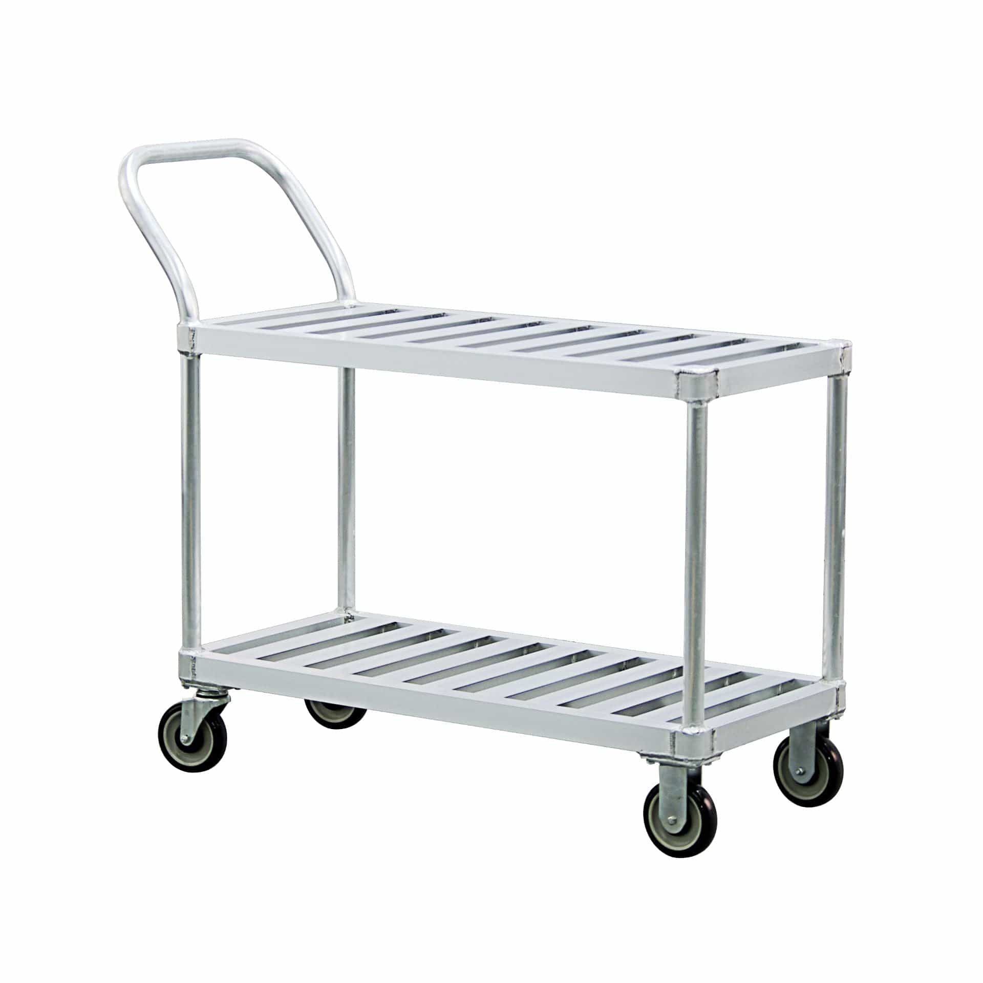 These all welded aluminum carts provide maximum strength and durability. The solid top carts have a marine edge to help contain spills. The T-Bar top carts provide air circulation.