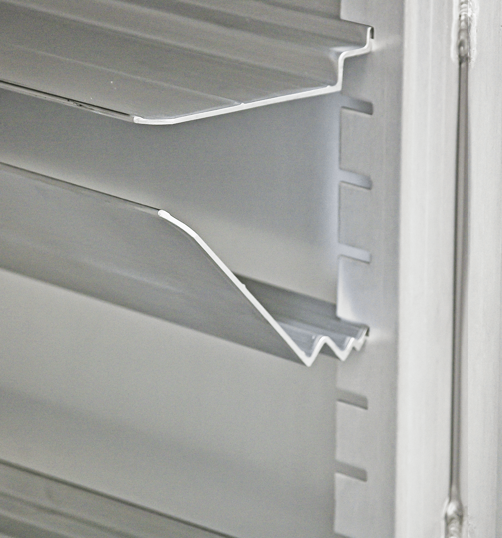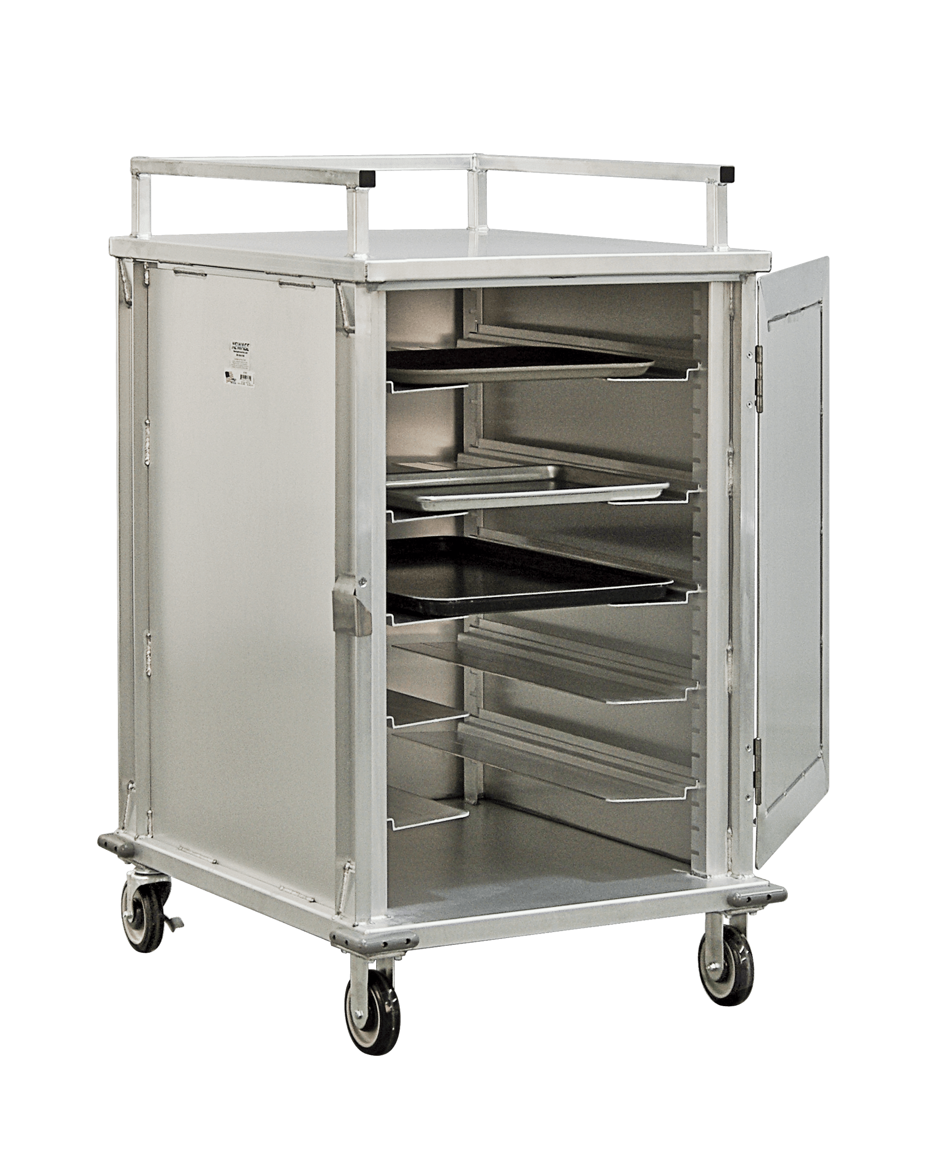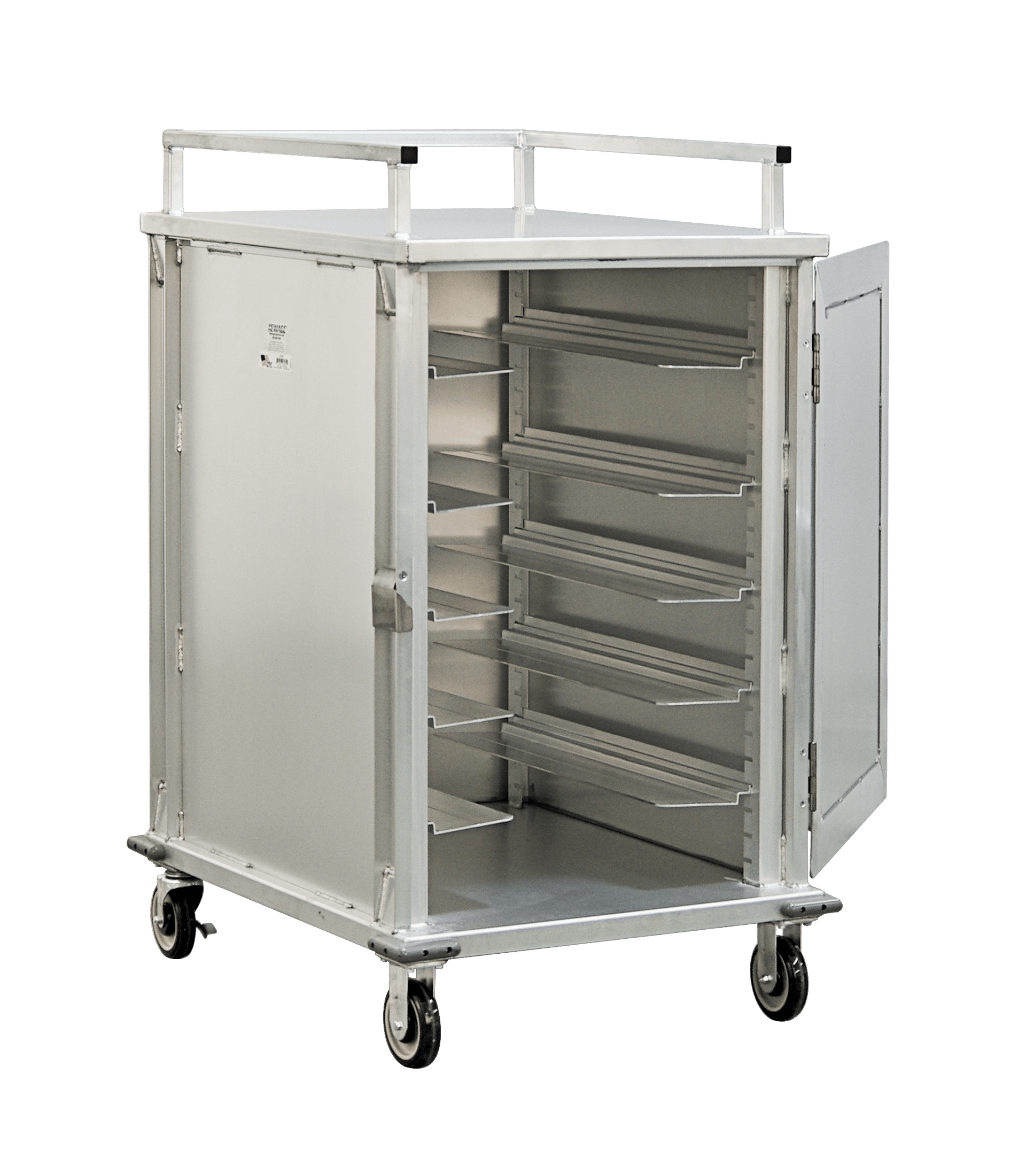This versatile cabinet features extra wide, stepped angle guides that are easily repositioned to accommodate your specific needs, and comes equipped to make transporting food effortless.