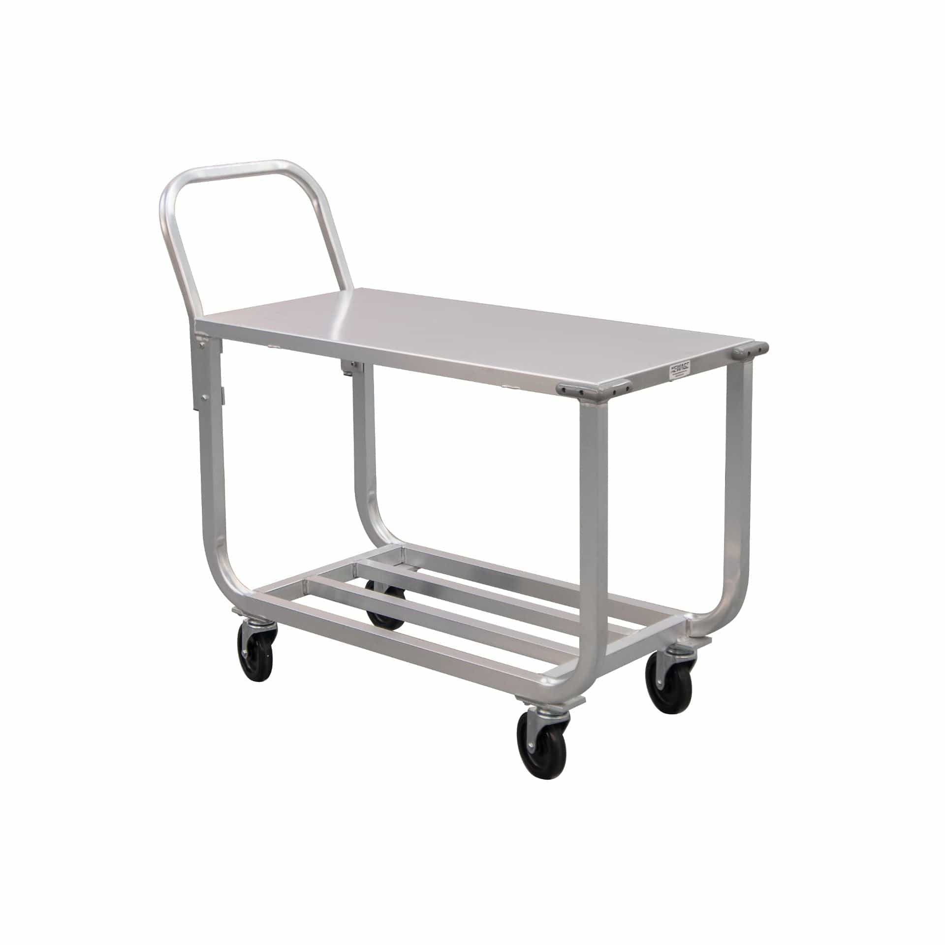 Robust Construction: Crafted from durable aluminum, these carts are built to withstand heavy use. The sturdy frames and reinforced shelves support up to 350 pounds, ensuring reliable performance.