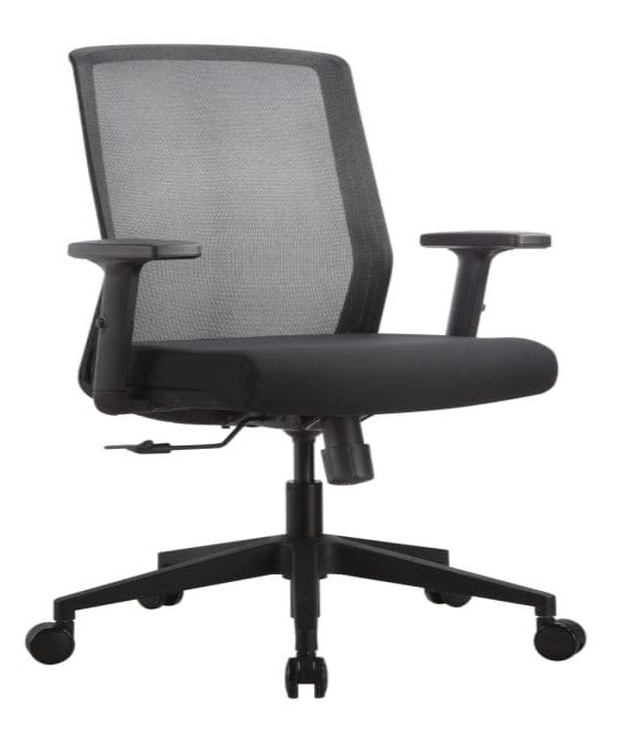 - Attractive, black mesh back with black fabric seat