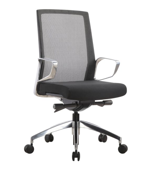 - Adaptive black mesh back with black fabric seat
