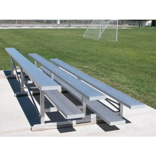 Lightweight, corrosion resistant aluminum bleachers provide an economical, maintenance free seating solution for indoor or outdoor sporting events. Bleachers are made of extruded aluminum alloy to ensure uniform strength with aluminum angle frame for durability and reinforcement. All seat boards are satin anodized to prevent oxidation or discoloring. Aluminum bleachers include single floor planks with 8" rise. 5 Year Limited Warranty.