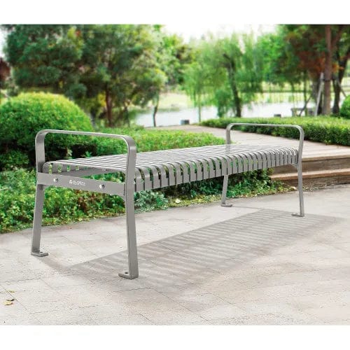 - 6' Outdoor Bench, Backless, Vertical Steel Slat, Gray