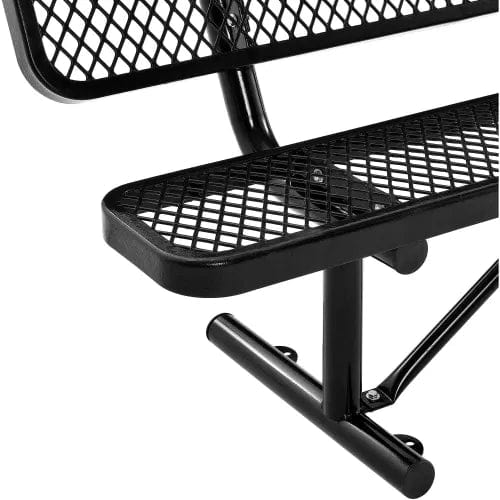 - 6' Outdoor Steel Bench w/ Backrest, Expanded Metal, Black