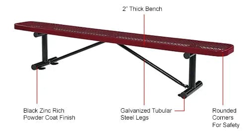 - 6' Outdoor Steel Flat Bench, Expanded Metal, Red