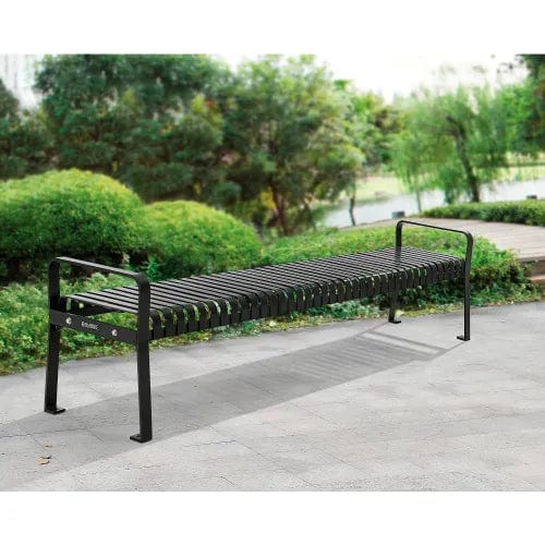 - 8' Outdoor Bench, Backless, Vertical Steel Slat, Black