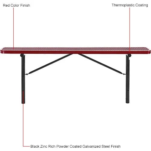 - 8' Outdoor Steel Flat Bench, Expanded Metal, In Ground Mount, Red