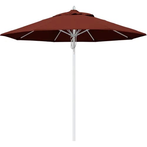 - California Umbrella Newport 9' Patio Umbrella, Silver Pole, Sunbrella 2A Henna Fabric