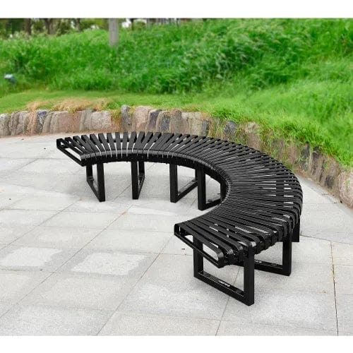 - Outdoor Curved Bench, Steel Slat, Half Circle, Black