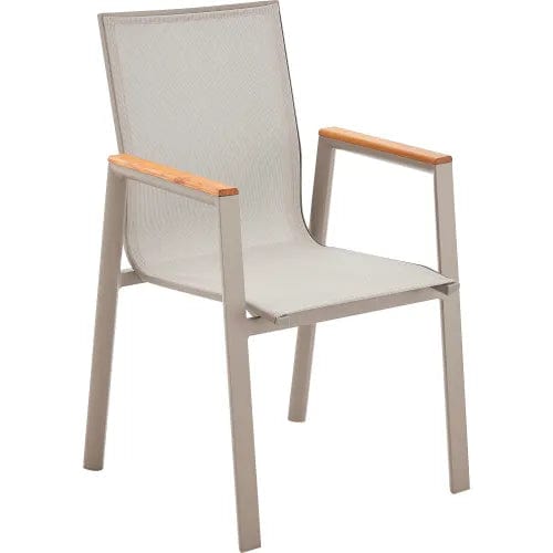 The Global Industrial™ Outdoor Sling Armchairs go perfectly with the Global Industrial™ Outdoor 27-1/2" Square Teakwood Table. The chairs are practical and conventional in design and made with a flexible PVC material for comfortable back support—inviting patrons to kick back and relax. This outdoor dining set is the ideal solution for poolside dining areas, parklets & streateries, cafes, bistros and more. The slatted teak tabletop is stylish in appearance while the durable aluminum frame is what is expected for outdoor commercial furniture. 1-Year Limited Warranty.