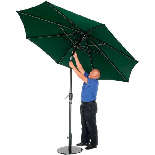 Global Industrial™ 8-1/2' outdoor patio umbrella is perfect for commercial use for hotels, restaurants, cafes or residential use, this umbrella is ideal for any outdoor occasion. Made of quality grade, fade-resistant Olefin fabric, this market umbrella fully opens to 8-1/2 feet to give you plenty of shade. Sturdy black powder-coated aluminum pole comes in 2 pieces which snap in together for easy assembly. 8 aluminum ribs on the underside keep the umbrella steady in windy conditions. Top air vent provides wind and heat ventilation while crank lever makes it easy to set up and open. Tilt button allows you to shade your area throughout the day. Can be used in picnic tables with umbrella hole 1-1/2" or more. Fade resistant for up to 1,000 hours.