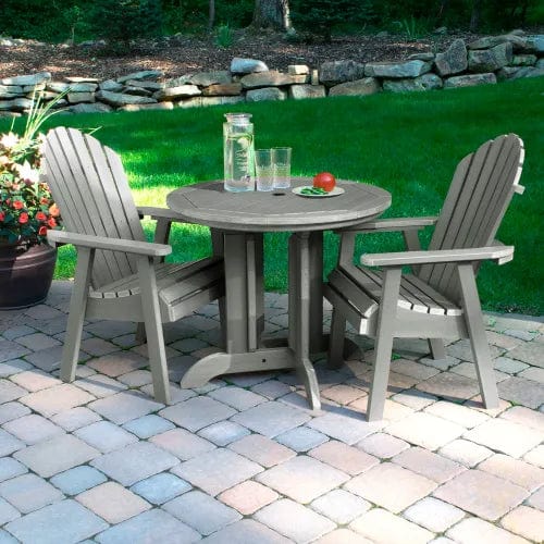 Perfect for restaurants, casual dining, and snack areas or employee seating – these 3 piece sets can be combined with our 5 piece Muskoka Adirondack Dining sets (which use a larger 48" table) to create a balanced seating area catering to couples and/or groups. Maintenance is a breeze, just power wash on a wide or medium nozzle to remove surface grime. Leave this product in place year-round and it will always look like new. Some assembly required.