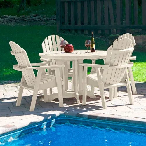 Perfect for restaurants, casual dining, and snack areas or employee seating – these 5 piece sets can be combined with our 3 piece Muskoka Adirondack Bistro sets (which use a smaller 36" table) to create a balanced seating area catering to couples and/or groups. Maintenance is a breeze, just power wash on a wide or medium nozzle to remove surface grime. Leave this product in place year-round and it will always look like new. Some assembly required.