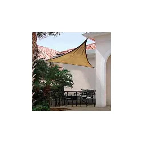 Create your own shade environment with the 16x16 TriangleShadeSail. Outdoor Sun Shade Sails provides sun protection, innovative design, quality features and best value. Decorative Sand earth tone color fabric. Long Life heavyweight fabric is breathable UV stabilized inside and out.Carries a full 1 year fabric warranty Specially designed woven polyethylene allows rain to pass through- water will not collect or pool. Reinforced stitched corners with all steel fittings attach quick and easy to mounting points Advanced engineered fabric blocks 90% of harmful UVA and UVB rays yet is remarkably breathable allowing air to circulate Shipped ready for installation with a basic install hardware kit. Use more than one shade sail to create your own unique outdoor shade and living space.