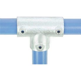 Most commonly used as the 90° joint between the top rail and an intermediate upright on safety railing. As there are two socket set screws in the sleeve, this fitting can be used where a join is required in the horizontal pipe. The Type 10 fitting can be used as an alternative when a join in the pipe is not required.