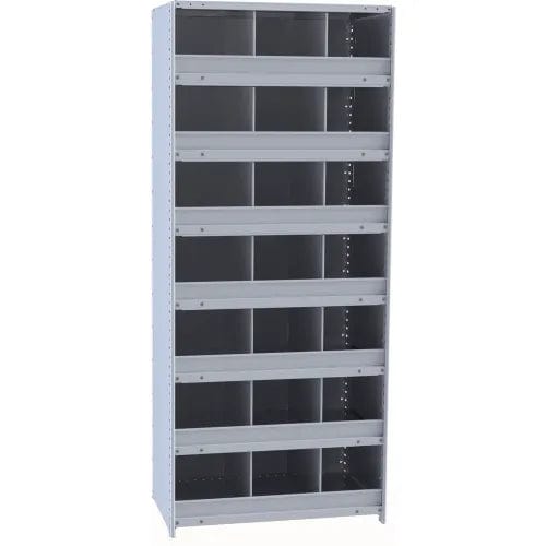 Centerline Dynamics Closed Metal Bin Shelving Starter Hallowell Hi-Tech Metal Bin Shelving 36"W x 24"D x 87"H 725 Dark Gray  Starter Unit (21) 12"W x 12"H Bins With 3" Bin Fronts