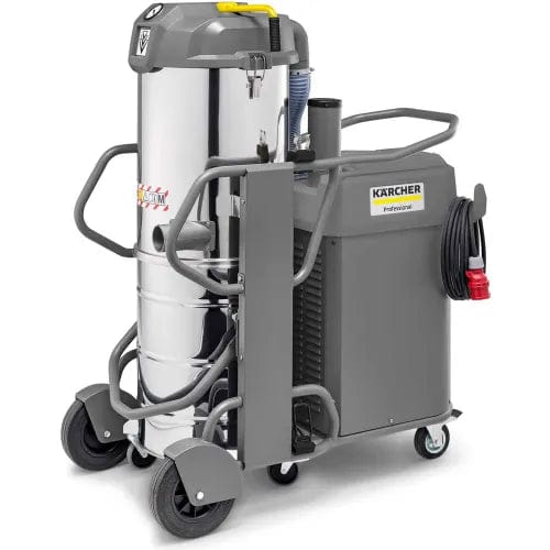 When continuous vacuum operation is required, look to the Kärcher series of three-phase (460V) industrial vacuums. Utilizing side-channel motors that are completely enclosed and fan cooled (TEFC), these vacuums are ideal for fixed process applications. Because of their high performance capability, Kärcher 3-phase vacuums allow operators to work further away from the vacuum. All vacuums in this series are CSA approved and NFPA 652 compliant. Optional HEPA filter is available for critical filtration.