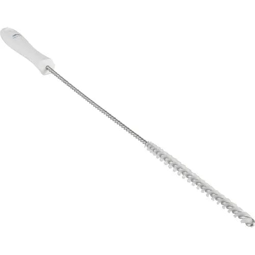 This tube brush is the smallest diameter of the tube brushes. It is used to clean small pipes and very narrow spaces between machine parts. The bristles are attached to a helically wound stainless steel shaft, making it strong and chemically resistant.