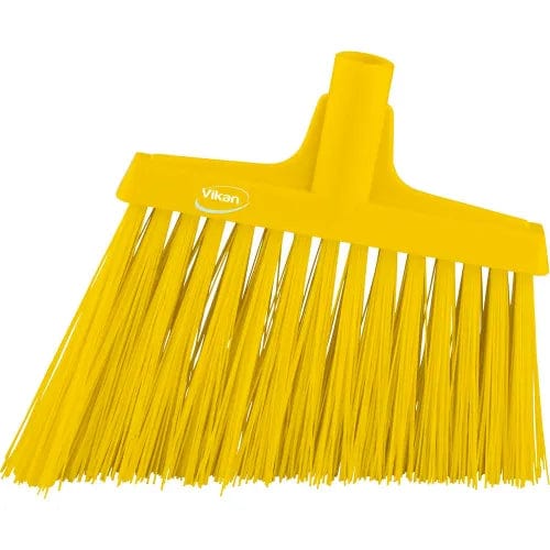 The angled design of this broom makes it easy to reach into narrow spaces between equipment when sweeping debris before the scrubbing action starts. It is particularly effective for collecting large particles of debris like meat and vegetables in a moist environment.