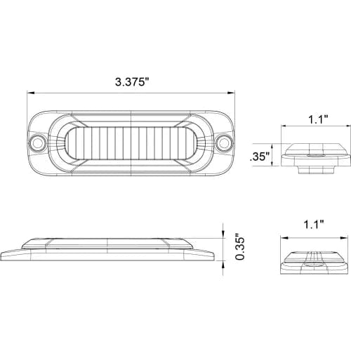 Buyers Products Amber LED 3.375 Inch LED Thin Mount Horizontal Strobe has three LEDs and 12 flash patterns with alternating and synchronous functions. The 12-24V light is designed with a slim .35 in. profile. It carries an SAE J595 Class 1 rating when mounted horizontally, and is CA13 certified. It is IP67 rated for water and dust resistance. Bezels and mounting brackets are available separately. It is backed with a 5 year warranty.