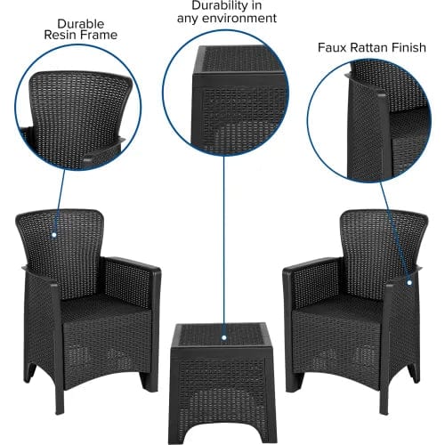 - 3 Piece Faux Rattan Plastic Chair Set w/ Side Table, Dark Gray
