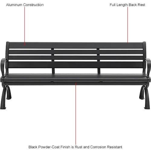 - 6' Aluminum Park Bench w/ Backrest, Black