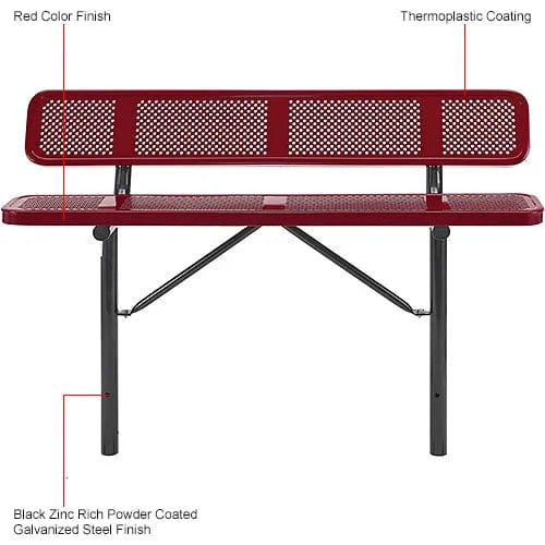 Centerline Dynamics Outdoor Seating 6' Outdoor Steel Bench w/ Backrest, Perforated Metal, In Ground Mount, Red